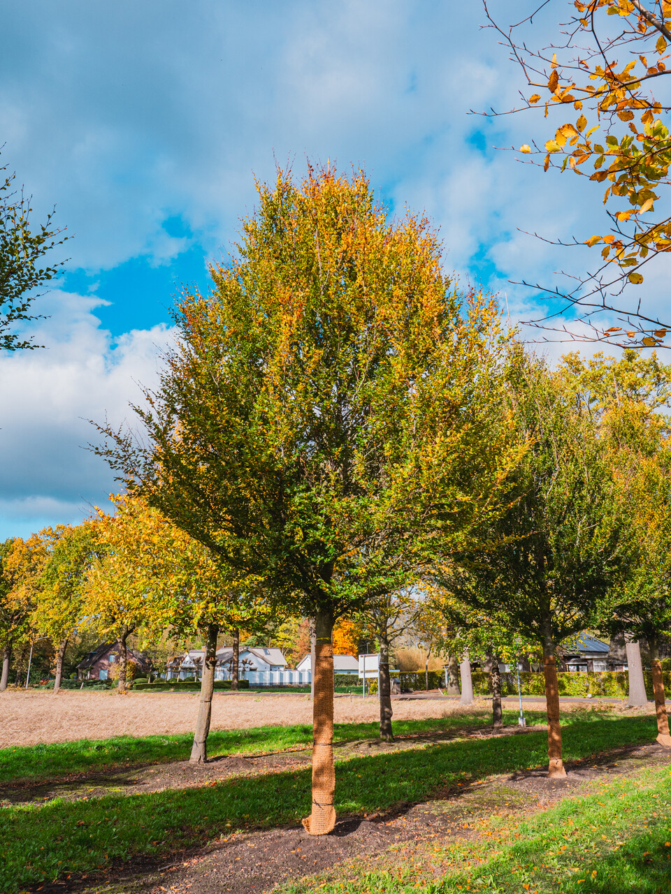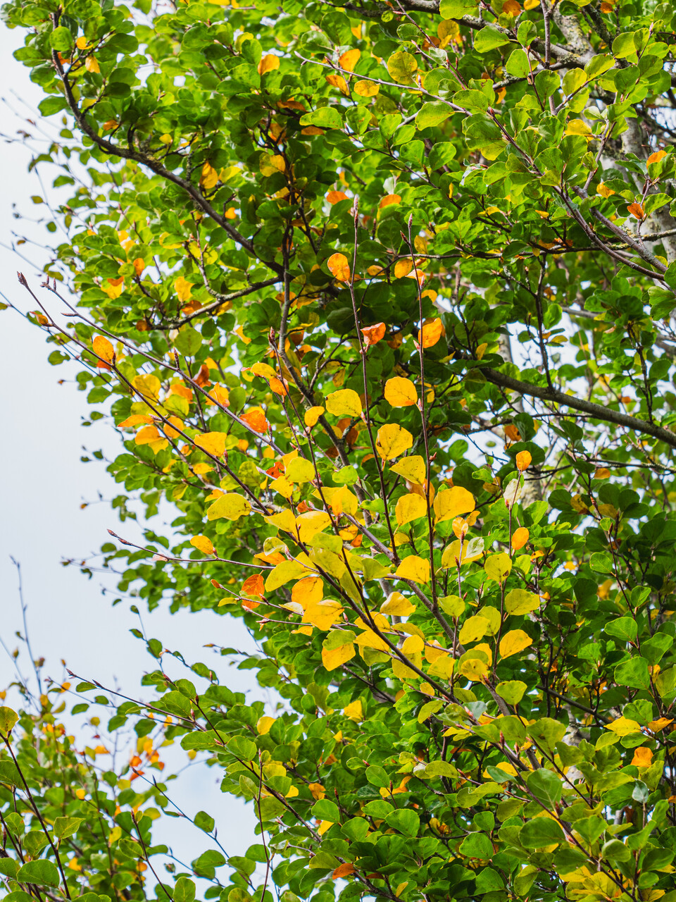 Listy stromu Fagus sylvatica 'Rotundifolia' se změní v žlutá během podzimu.