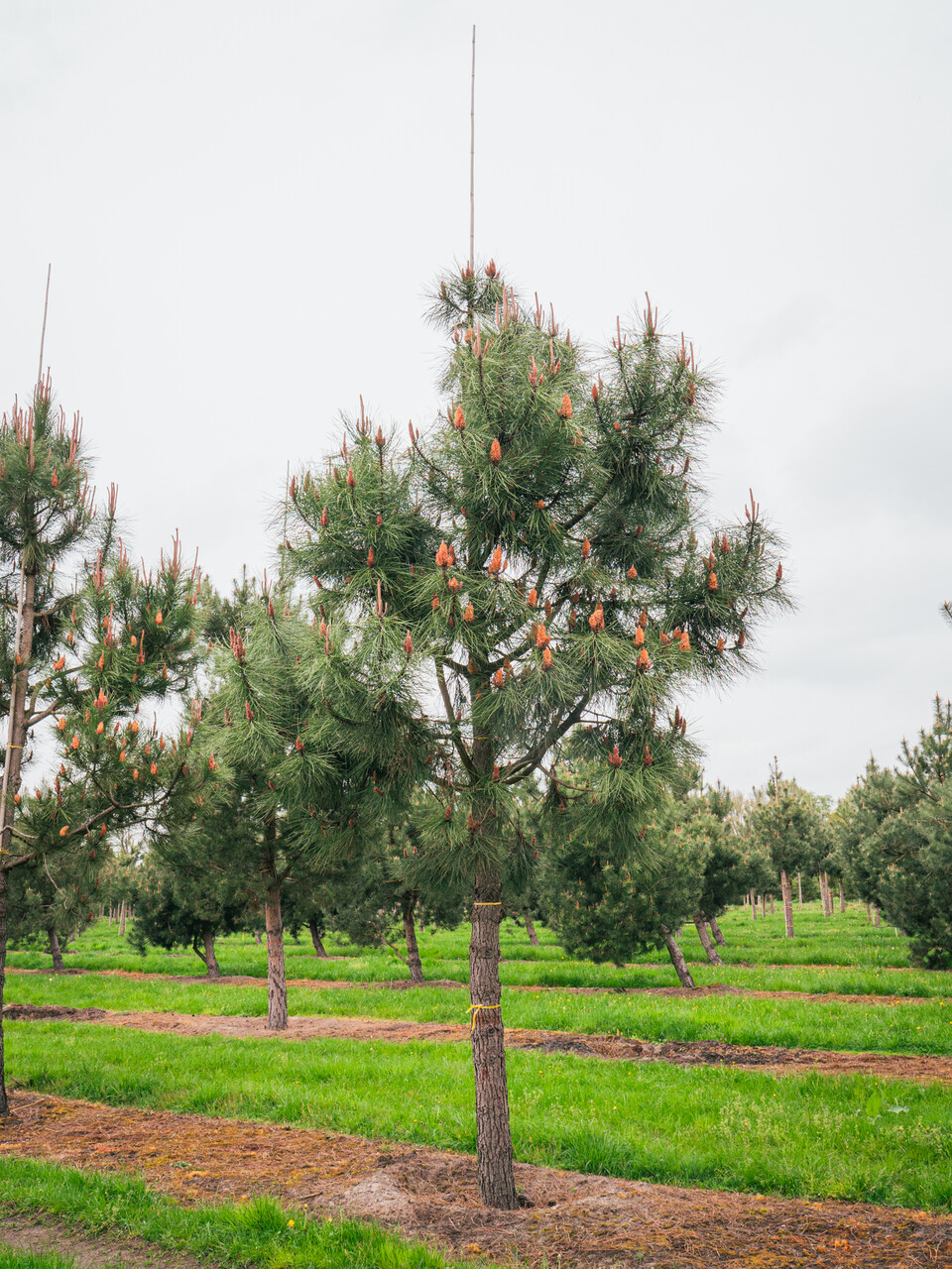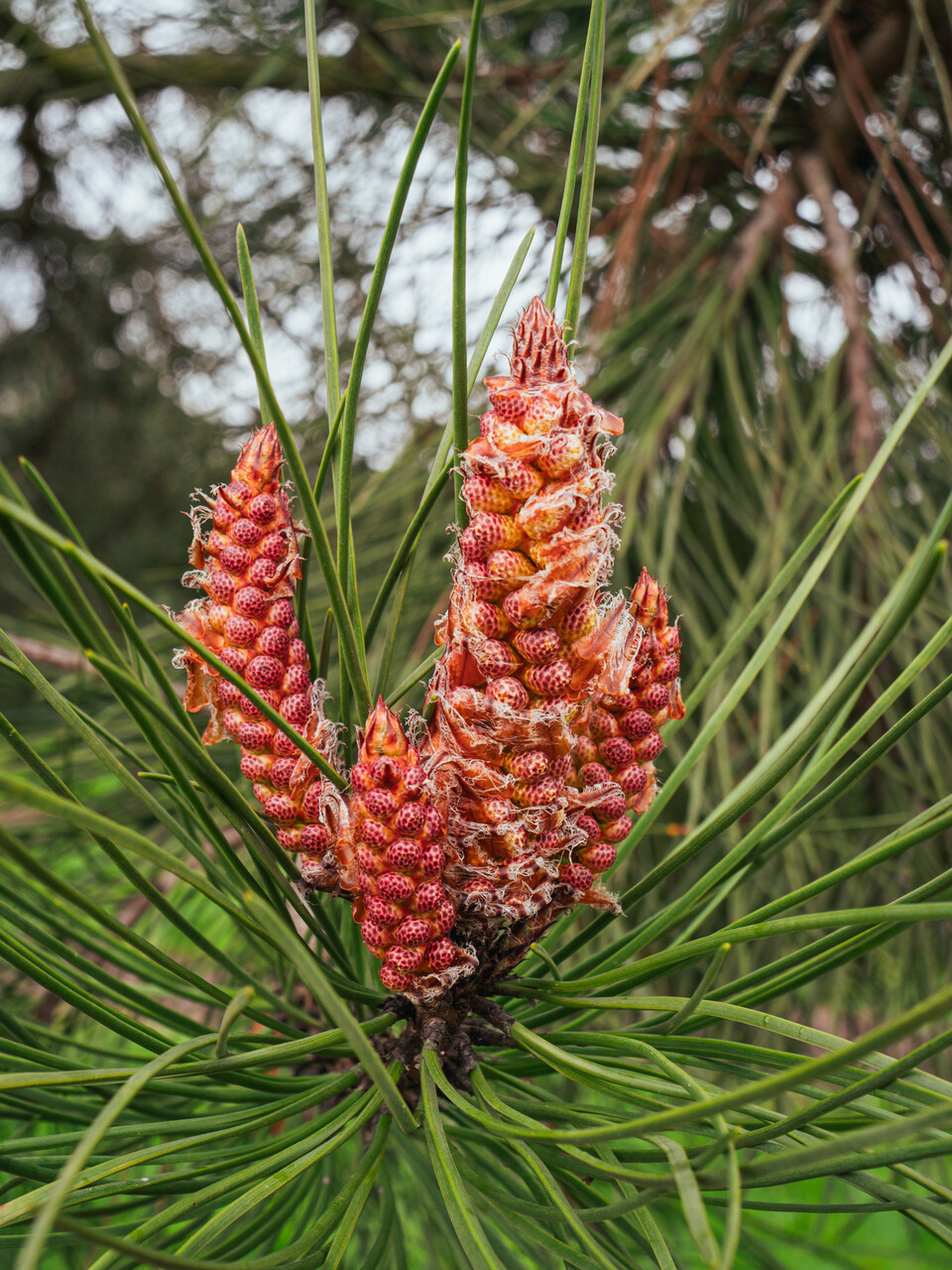 Borovice přímořská (Pinus pinaster) je statný strom, který ve svém přirozeném areálu, především v pobřežních oblastech, roste na suchých a písčitých půdách. Výjimku tvoří Maroko, kde v horách vystupuje až do nadmořské výšky 2000 m. Po staletí se hojně využívala ke zpevňování písečných dun a k produkci terpentýnu, díky čemuž se rozšířila a zplaněla i v jiných částech světa, například v Jižní Africe. Pinus pinaster tvoří zpočátku kulovitou korunu, která s věkem přechází ve vějířovitý tvar. Borka dospělých stromů je červenohnědá, s tmavšími a hlubokými rýhami. Tuhé, poměrně dlouhé jehlice mají leskle zelenou barvu a na všech stranách zřetelné řady průduchů. Štíhlé šišky jsou zpočátku purpurově hnědé, při dozrávání se zbarvují do světle hnědé. Pro svou citlivost na mráz se tato borovice nehodí pro plošné výsadby v severozápadní Evropě, uplatní se však v chráněných stanovištích, jako jsou terasy či velká atria. Výborně snáší mořský vítr a je tolerantní ke znečištění ovzduší.