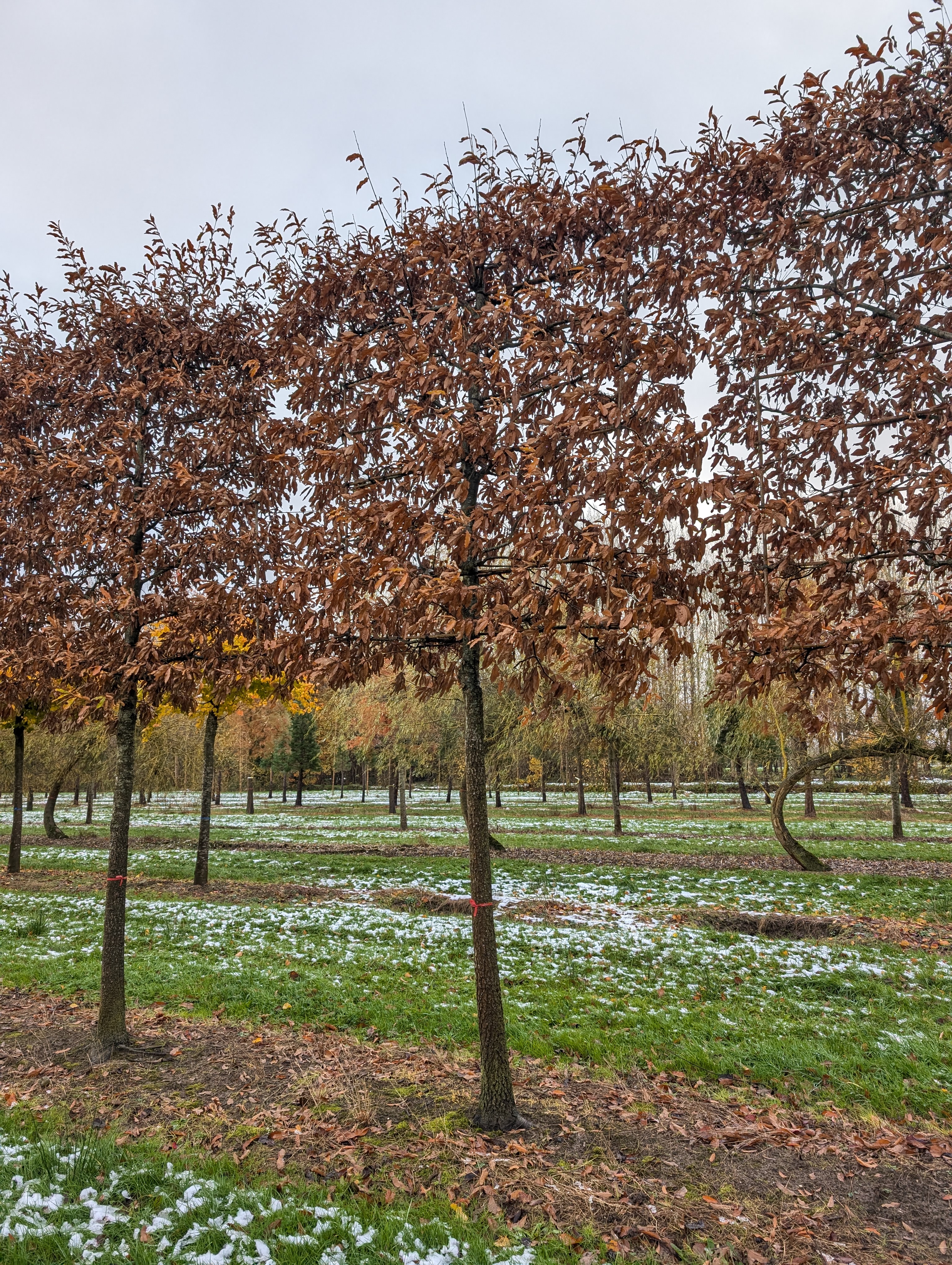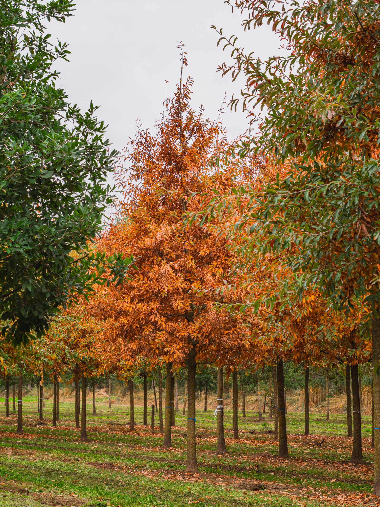 Správný čas na výsadbu stromu je mimo vegetační období. Ve střední Evropě, Quercus imbricaria se zemním balem může být vysazen od listopadu do pozdního dubna, nicméně toto velmi záleží na klimatických podmínkách a druhu stromu.