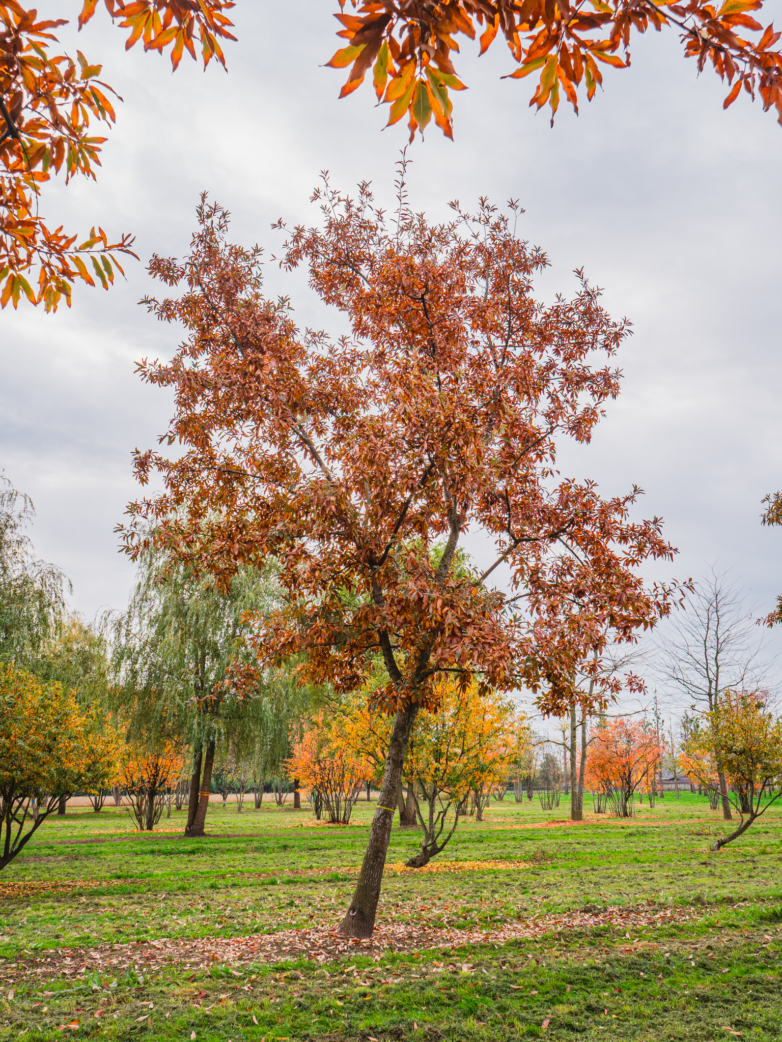 Listy stromu Quercus imbricaria se změní v žlutá, fialová během podzimu.