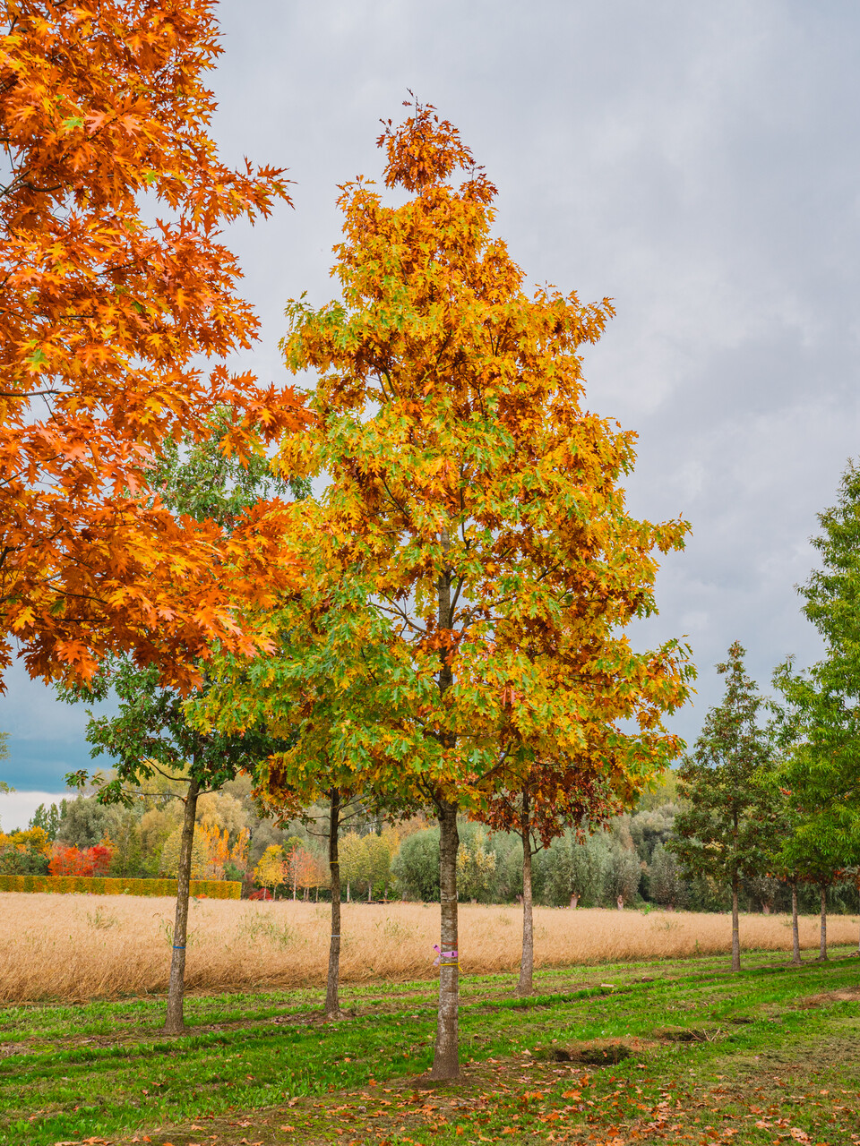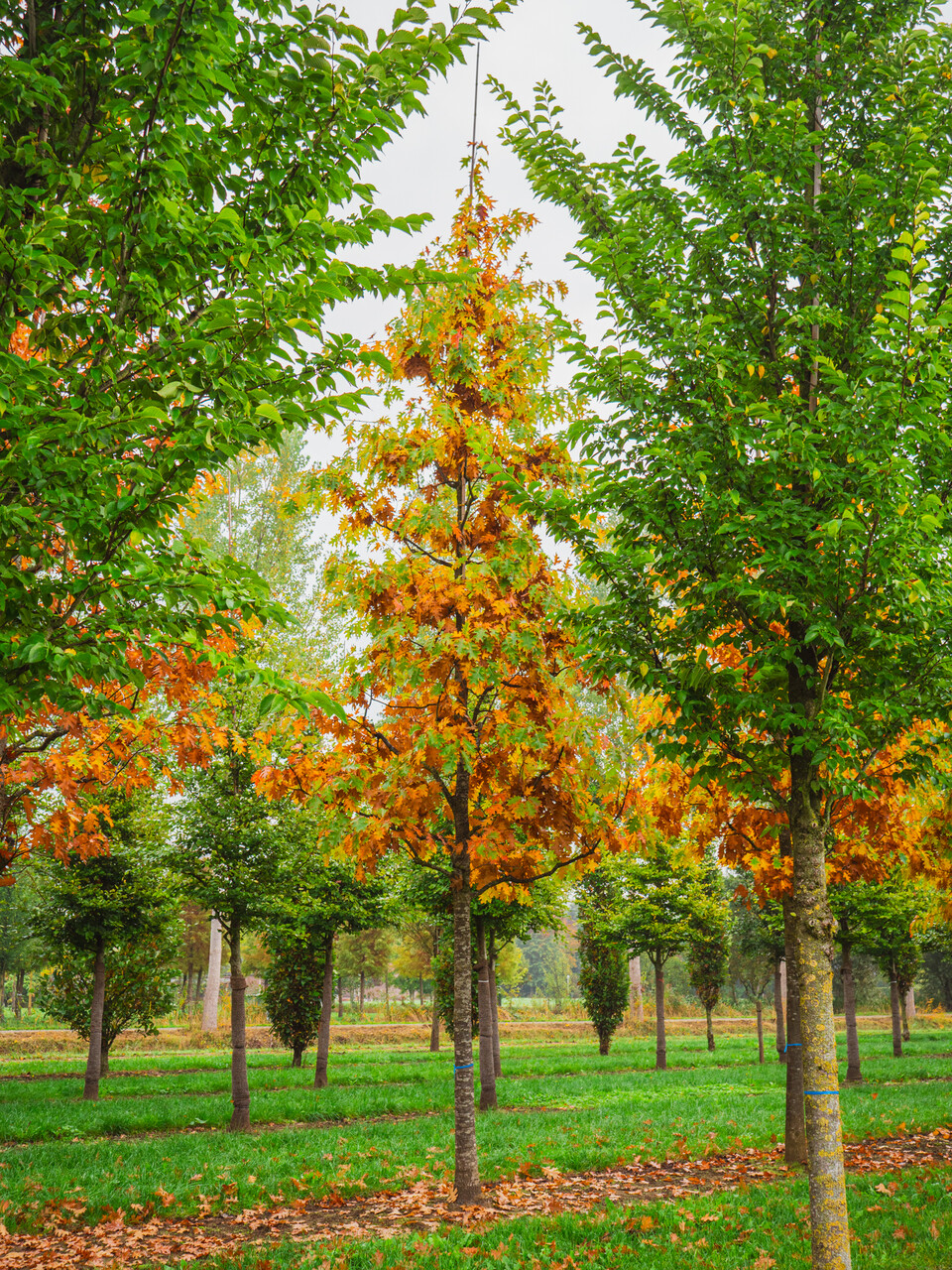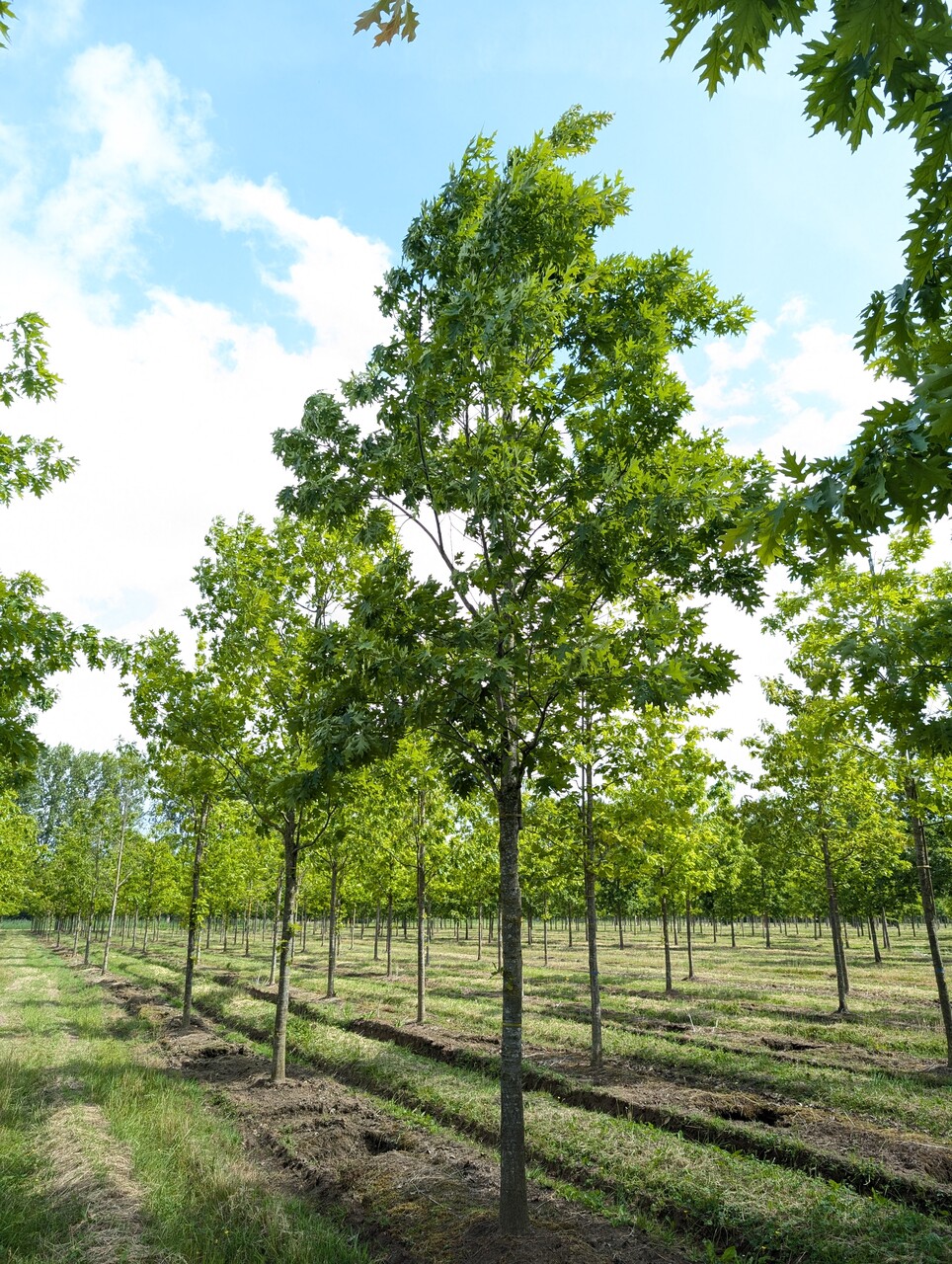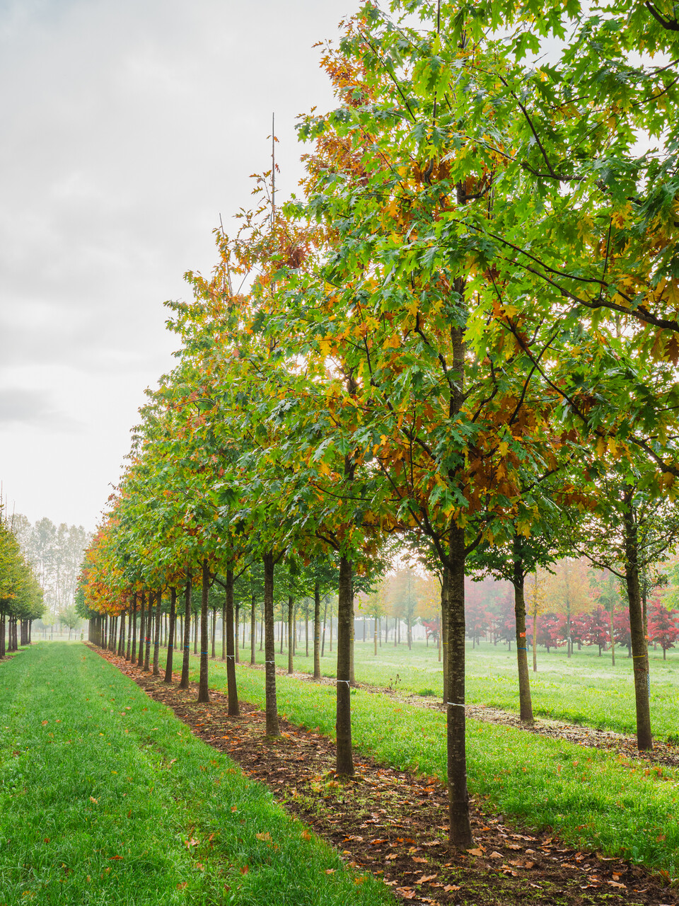 Správný čas na výsadbu stromu je mimo vegetační období. Ve střední Evropě, Quercus rubra se zemním balem může být vysazen od listopadu do pozdního dubna, nicméně toto velmi záleží na klimatických podmínkách a druhu stromu.