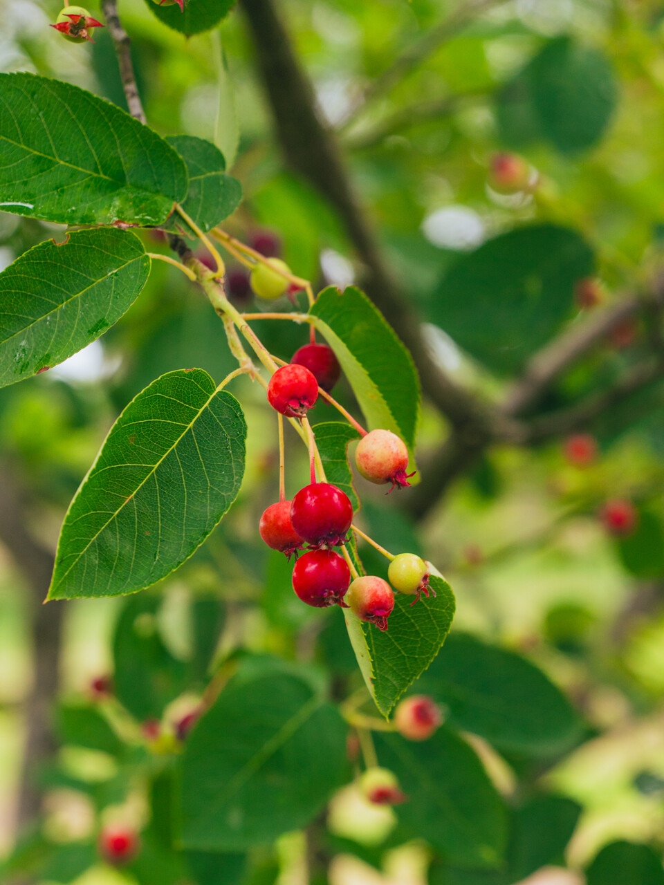 Listy stromu Amelanchier lamarckii se změní v žlutá, červená během podzimu.