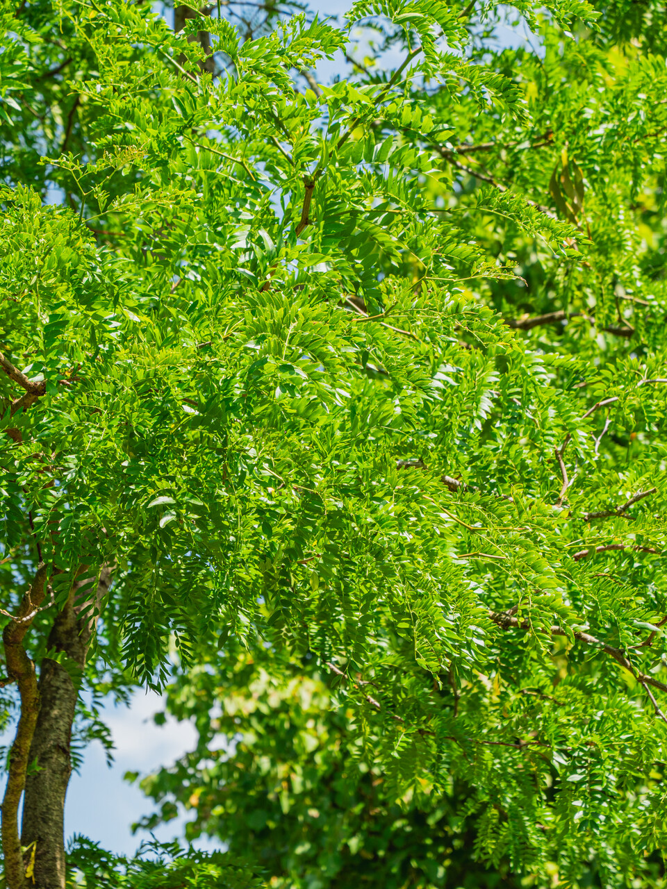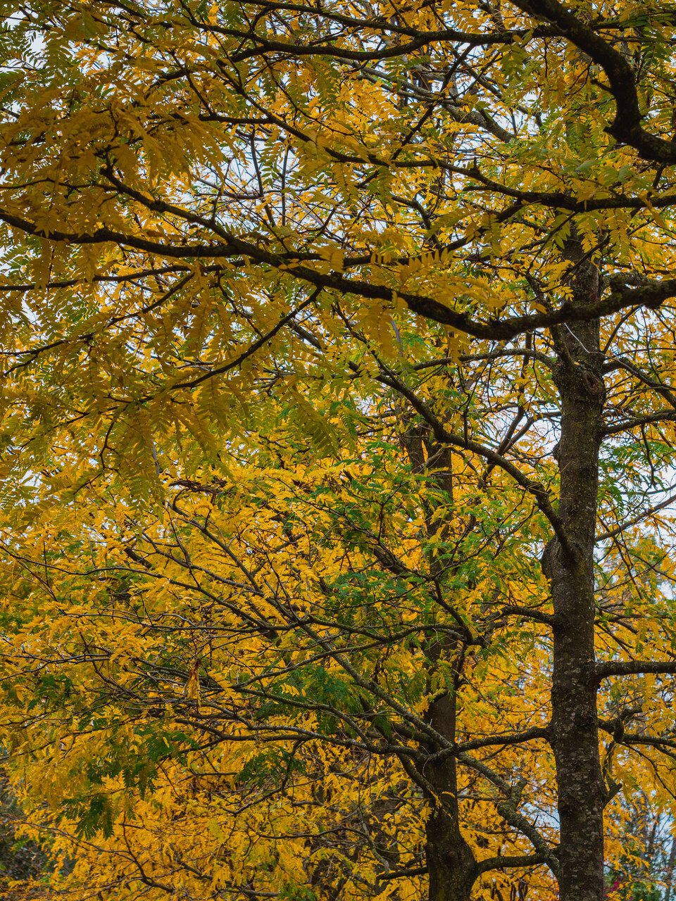 Listy stromu Gleditsia triacanthos f. inermis se změní v žlutá během podzimu.