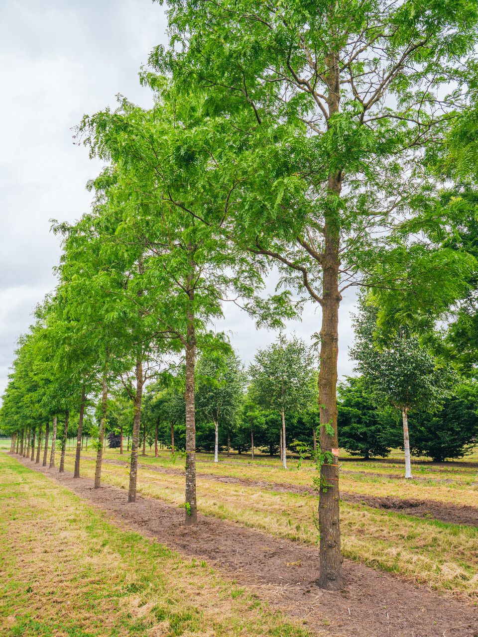 Správný čas na výsadbu stromu je mimo vegetační období. Ve střední Evropě, Gleditsia triacanthos 'Skyline' se zemním balem může být vysazen od listopadu do pozdního dubna, nicméně toto velmi záleží na klimatických podmínkách a druhu stromu.