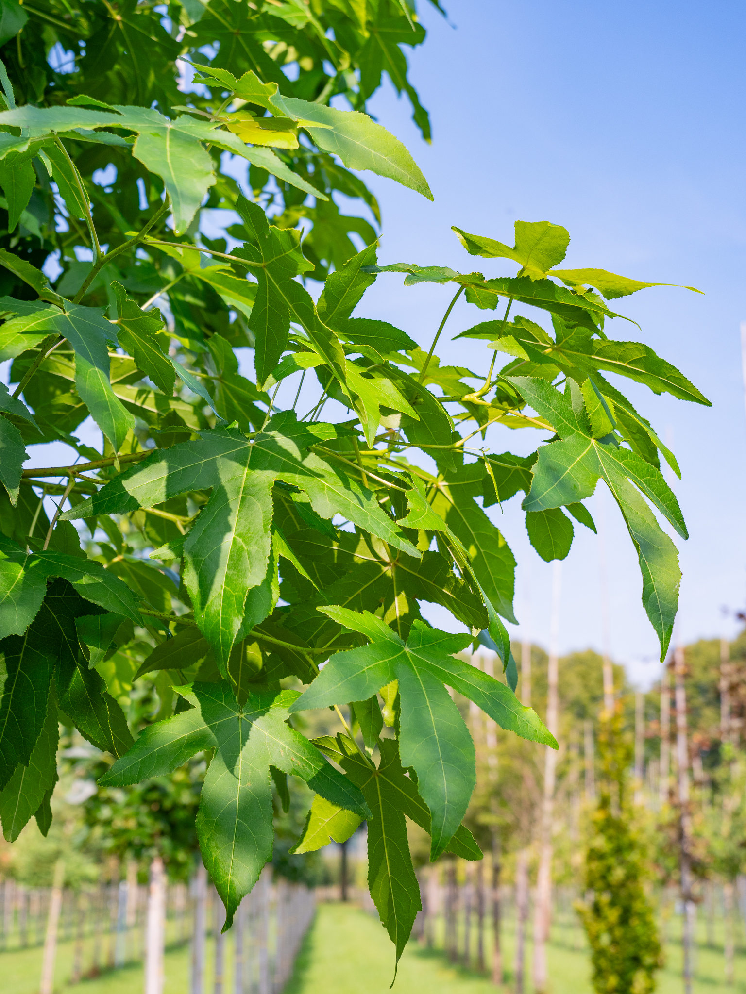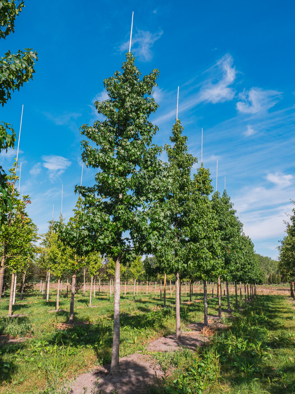 Správný čas na výsadbu stromu je mimo vegetační období. Ve střední Evropě, Liquidambar styraciflua se zemním balem může být vysazen od listopadu do pozdního dubna, nicméně toto velmi záleží na klimatických podmínkách a druhu stromu.