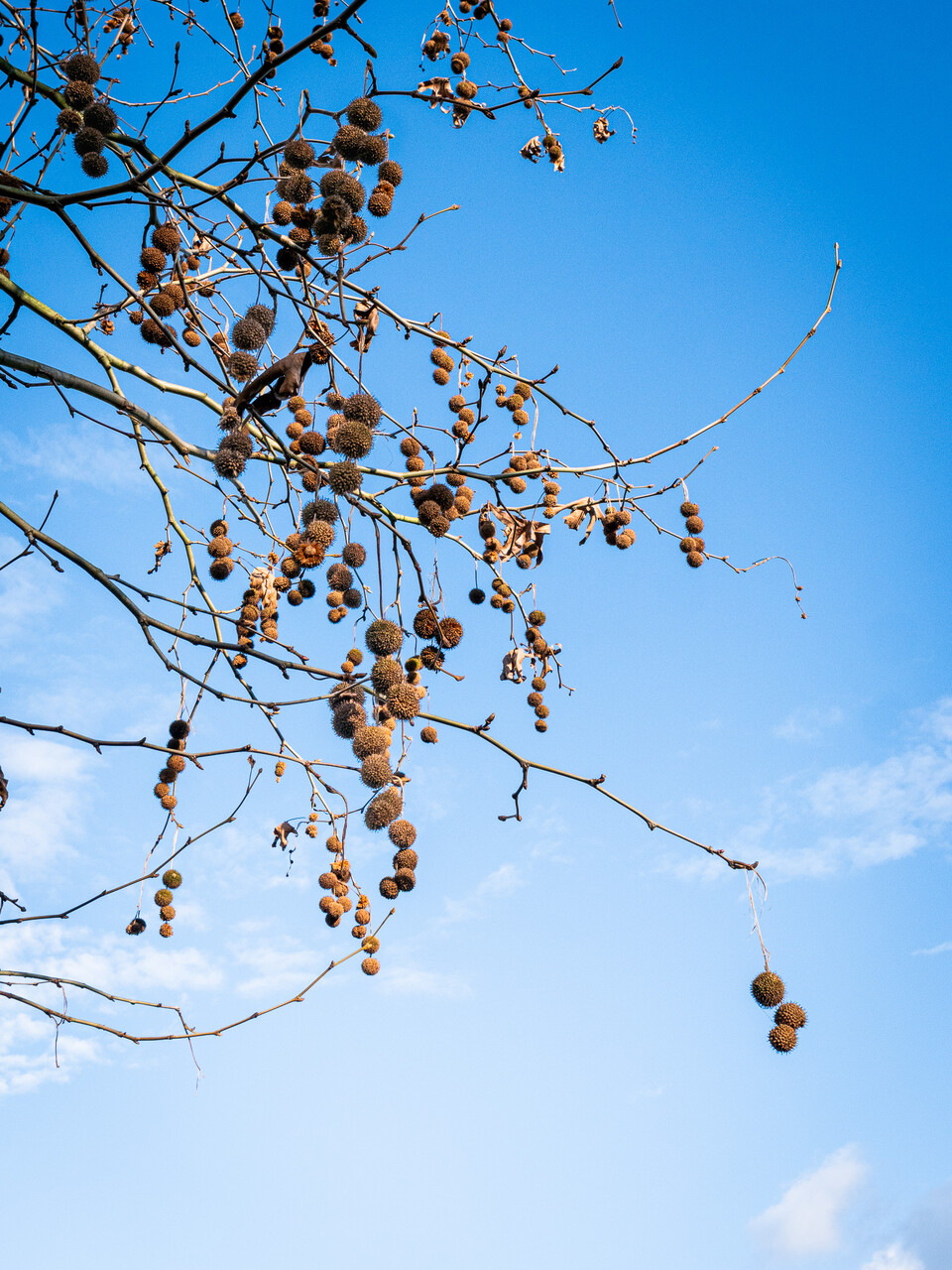 Platanus orientalis 'Minaret' kvete v květen, červen.
