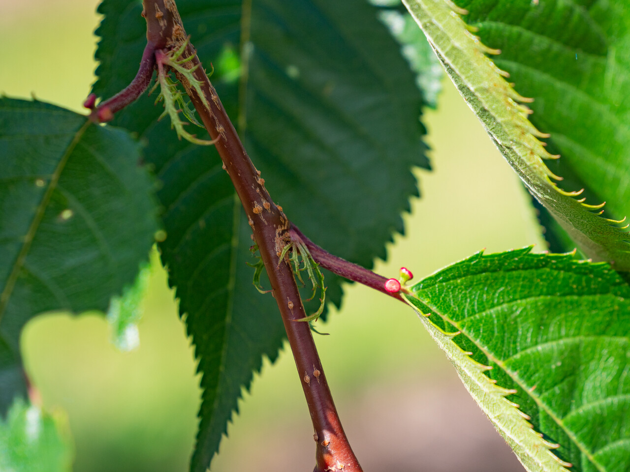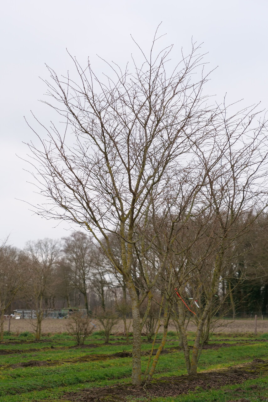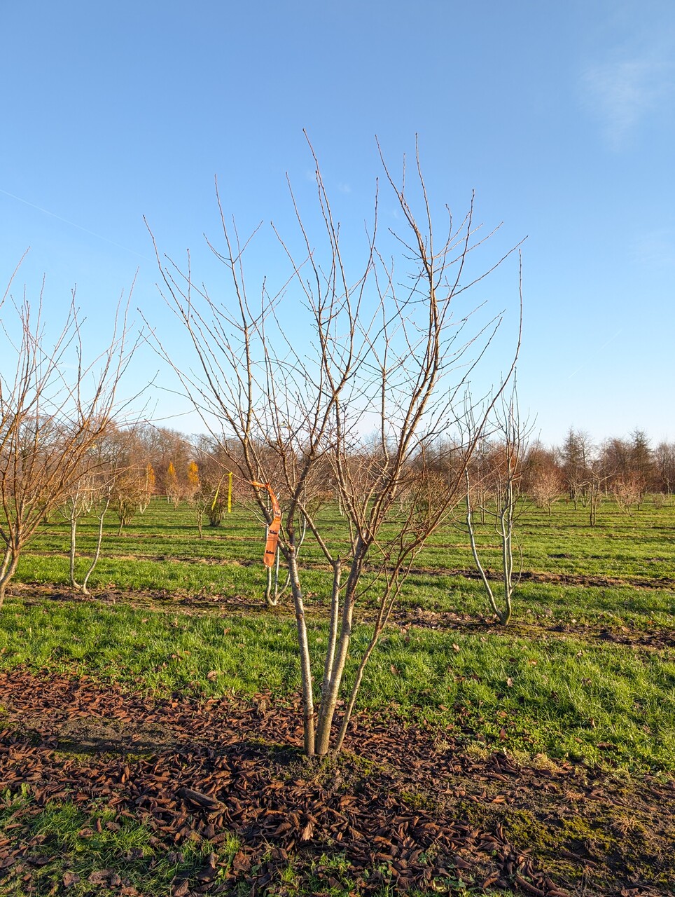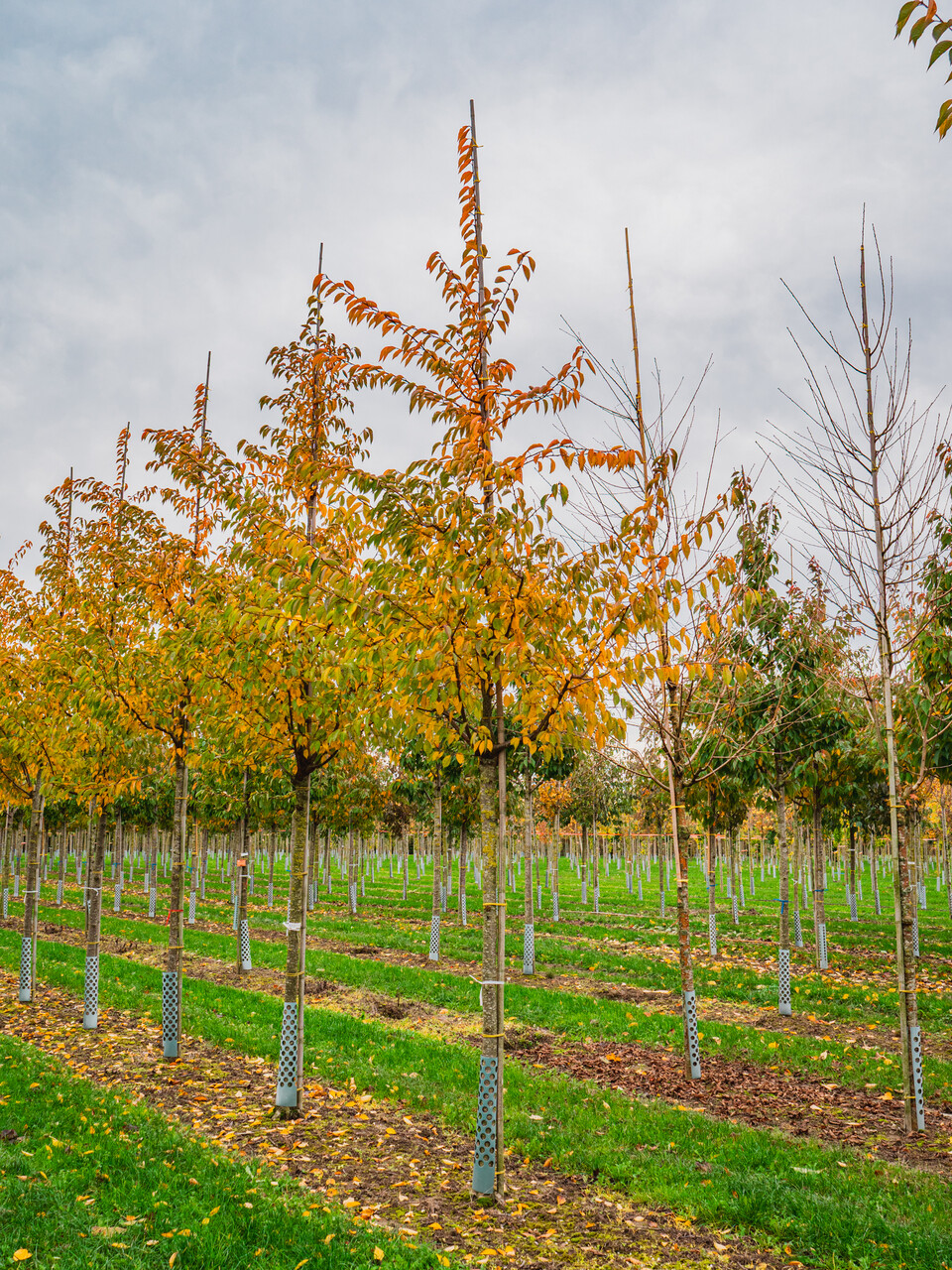 Listy stromu Prunus 'Accolade' se změní v žlutá, oranžová, červená během podzimu.