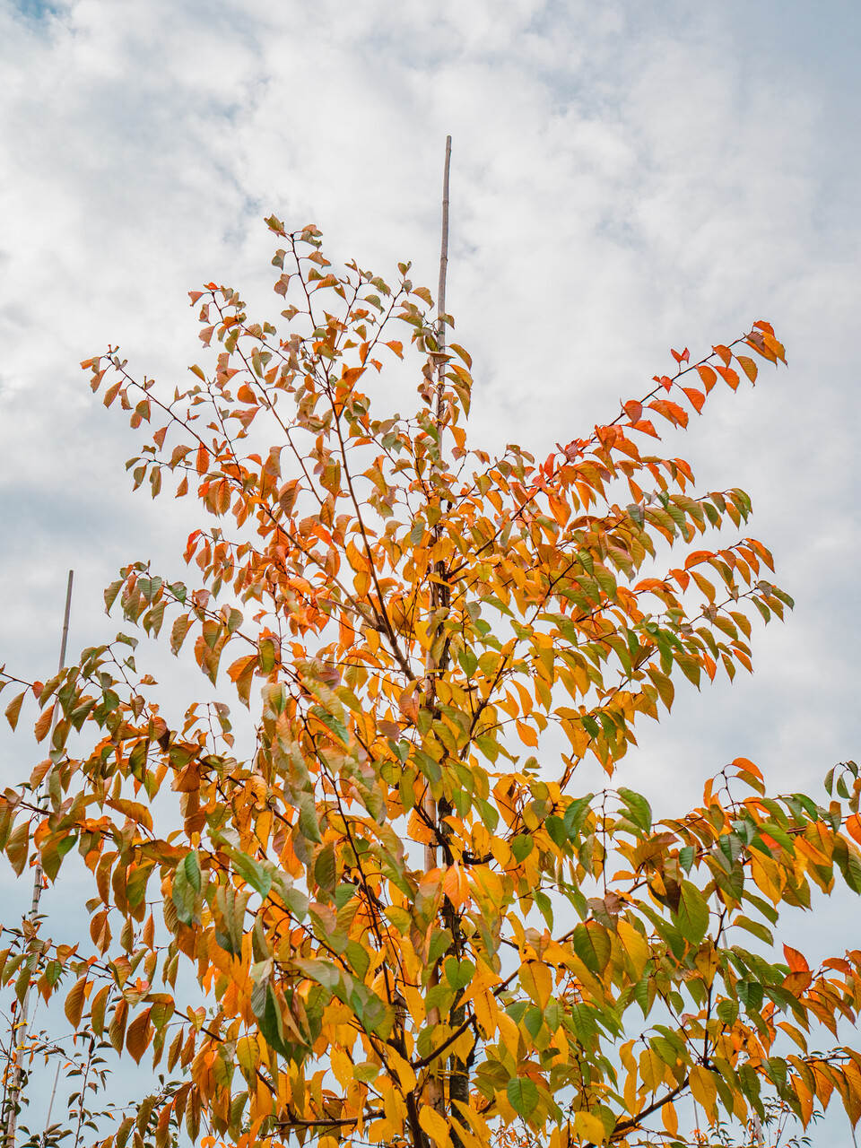 Listy stromu Prunus ×yedoensis se změní v žlutá během podzimu.