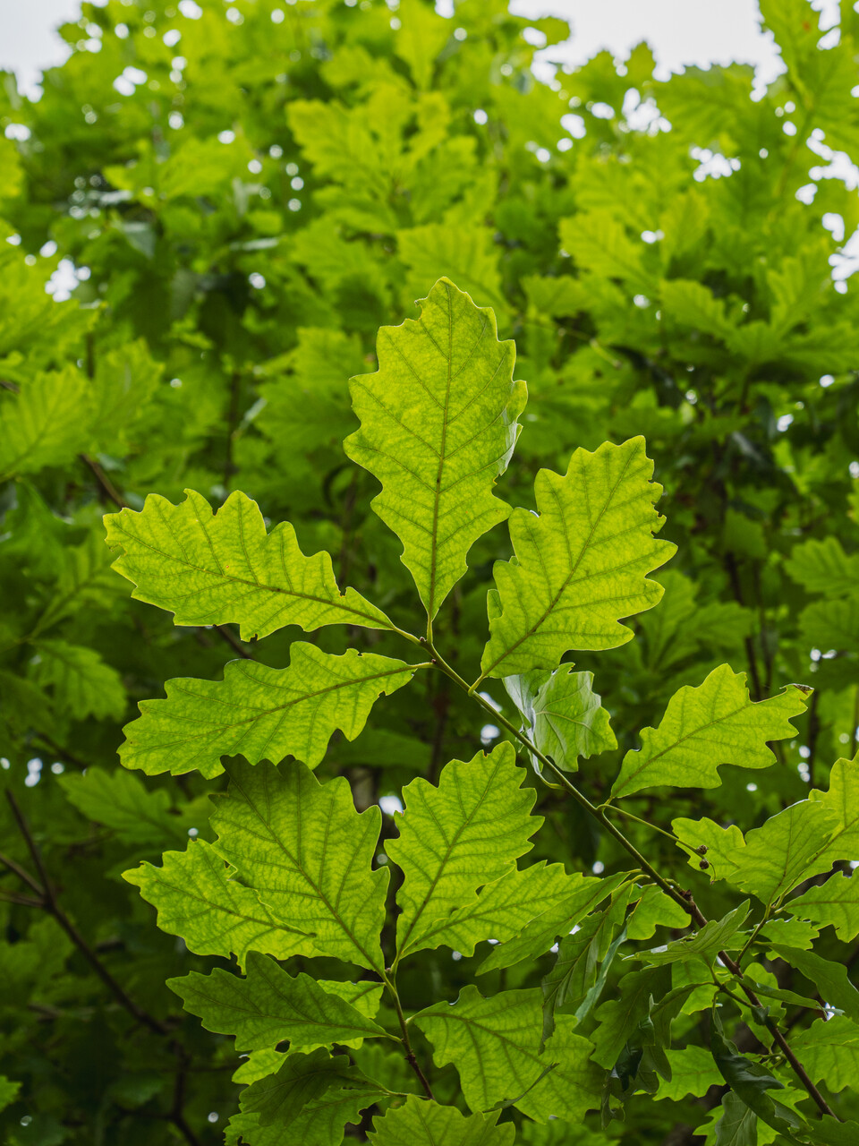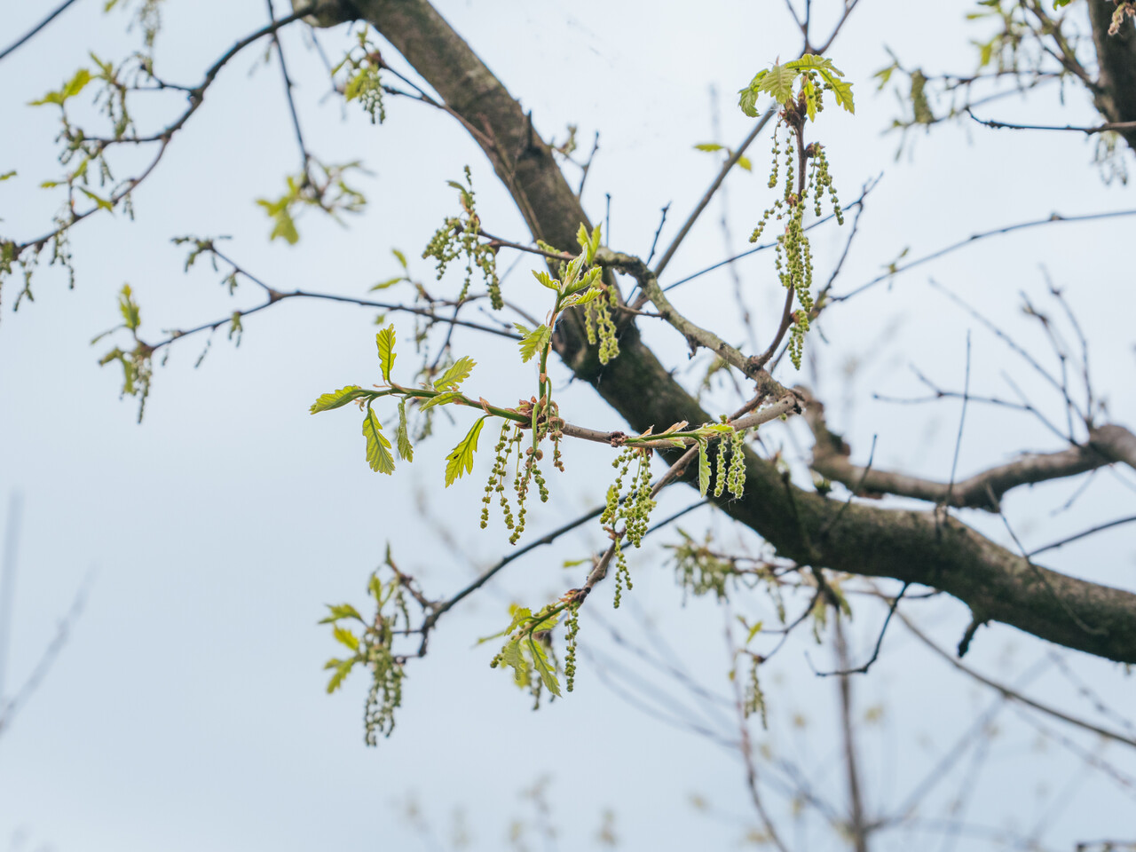 Quercus ×macdanielii HERITAGE ('Clemons') kvete v květen.