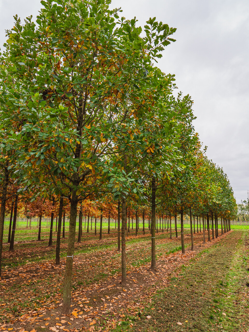 Listy stromu Quercus ×macdanielii HERITAGE ('Clemons') se změní v žlutá během podzimu.