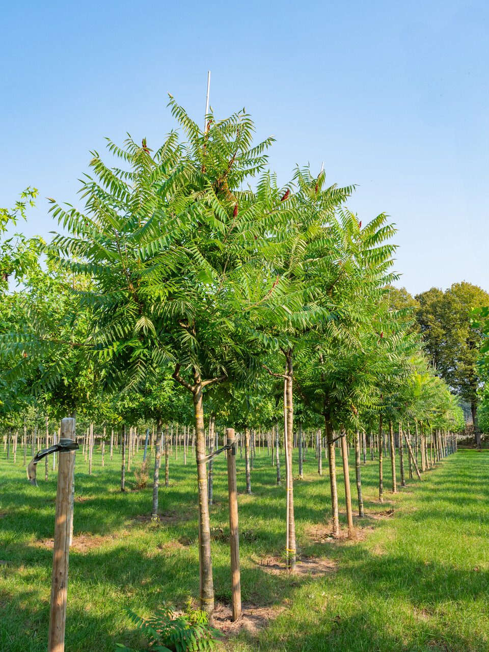 Rhus typhina může dorůstat výšky 3-6 m v závislosti na stanovištních podmínkách a klimatu.