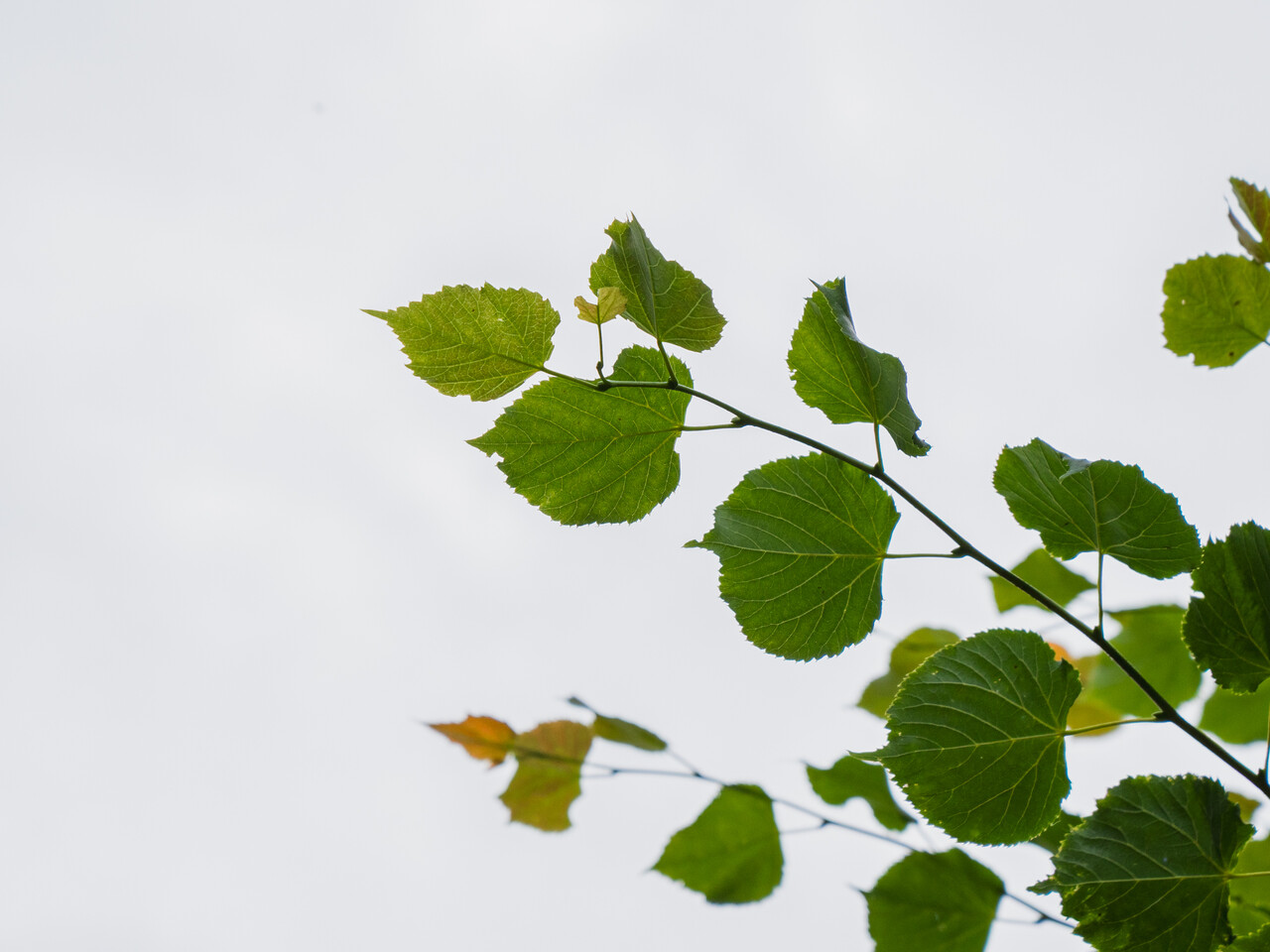 Listy stromu Tilia cordata 'Rancho' se změní v žlutá během podzimu.