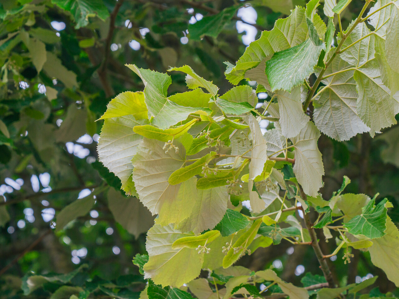 Listy stromu Tilia tomentosa 'Brabant' se změní v žlutá během podzimu.