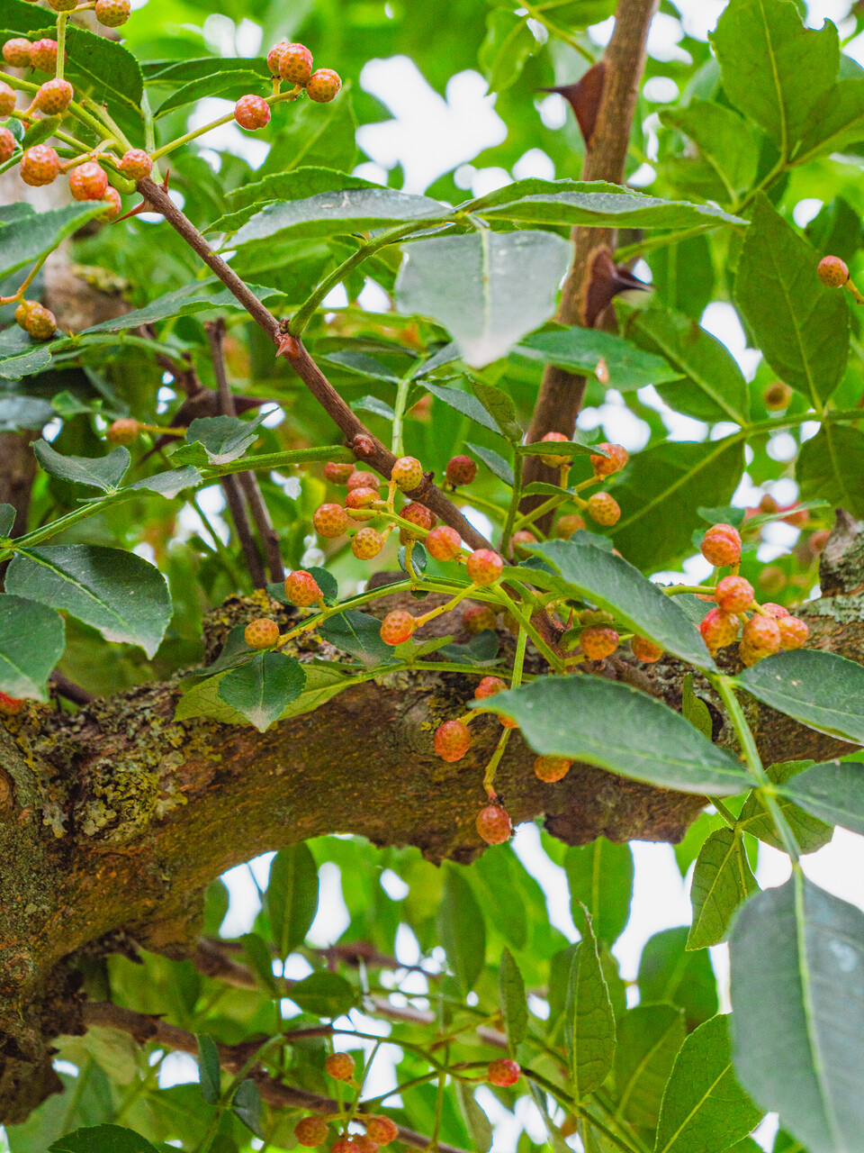 Zanthoxylum simulans může dorůstat výšky 3-6 m v závislosti na stanovištních podmínkách a klimatu.