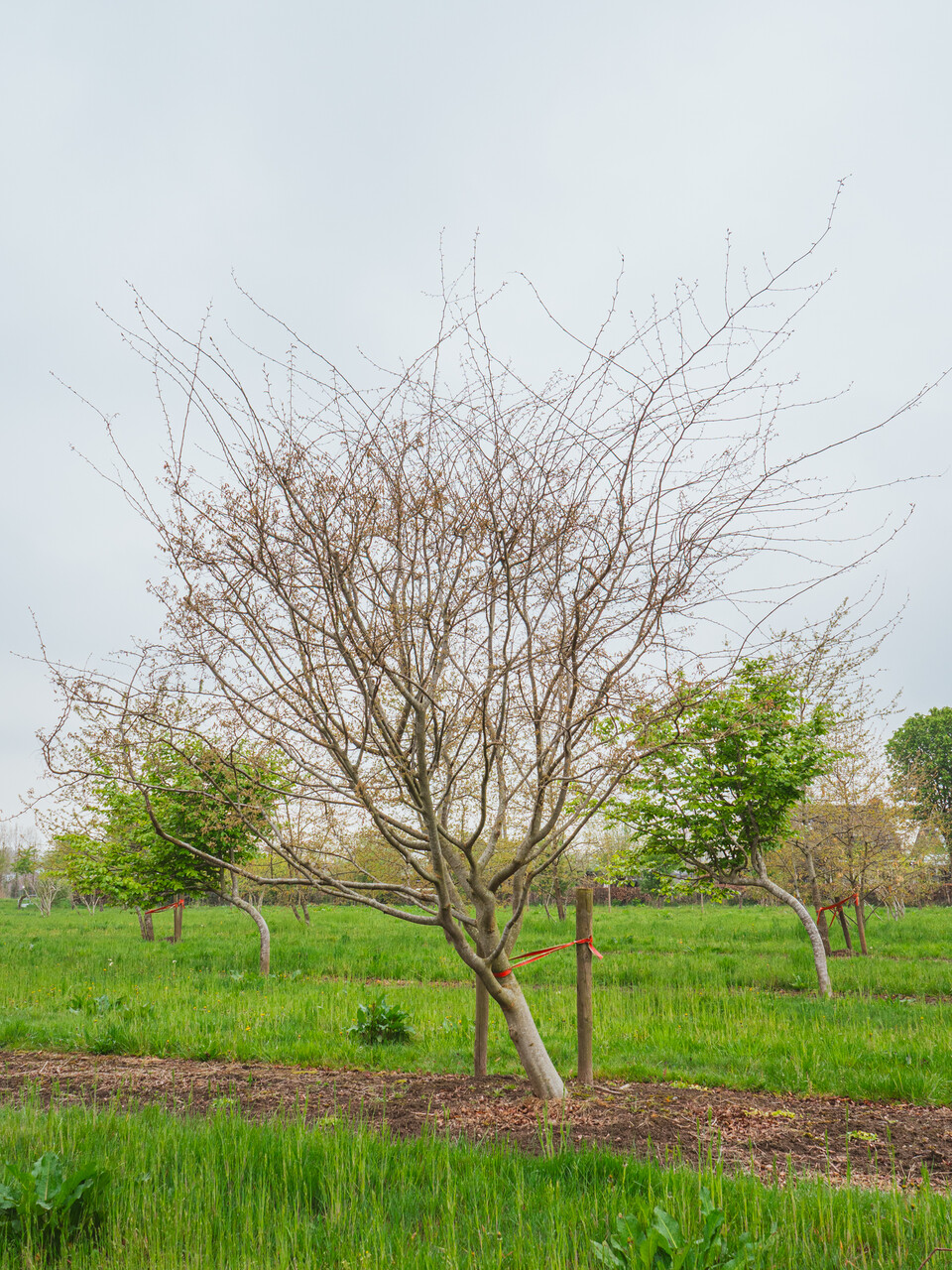 Zelkova carpinifolia 'Verschaffeltii' kvete v duben.
